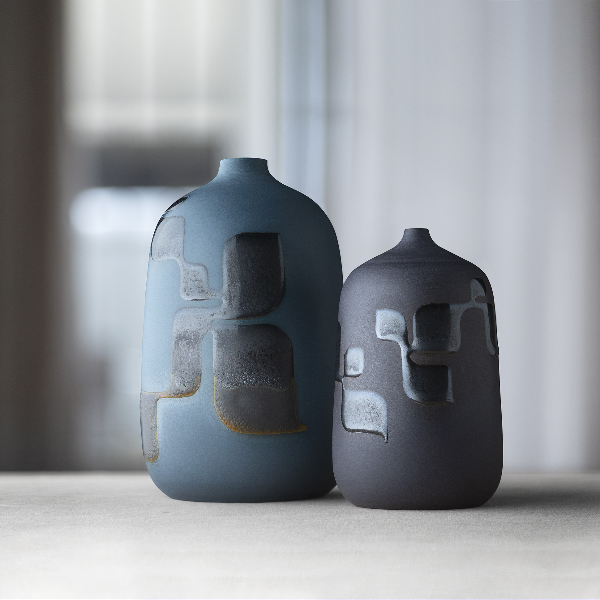 Dusk est une variante de la collection Colorfull, réalisée en porcelaine bleue ou noire.